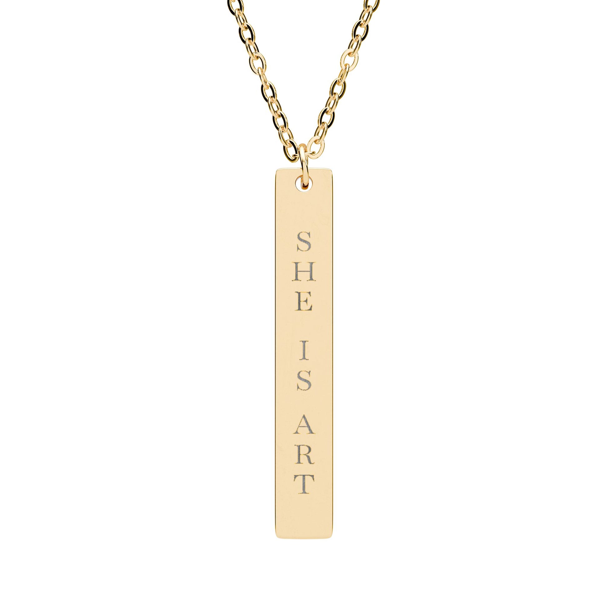 She Is Art Engraved Vertical Bar Necklace